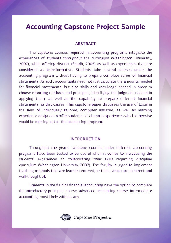 Read through samples of our papers! If you are using assistive technology and need help accessing these . In this article, we'll provide five business capstone project examples in more. Steps in doing a capstone paper or project: Our brilliance can only be proven if you see it with your own eyes.